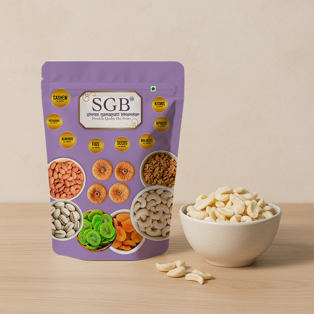 At Shree Ganpati Bhandar, we offer broken cashews that are clean, fresh, and hygienically packed — perfect for bulk use in homes, restaurants, or catering services.