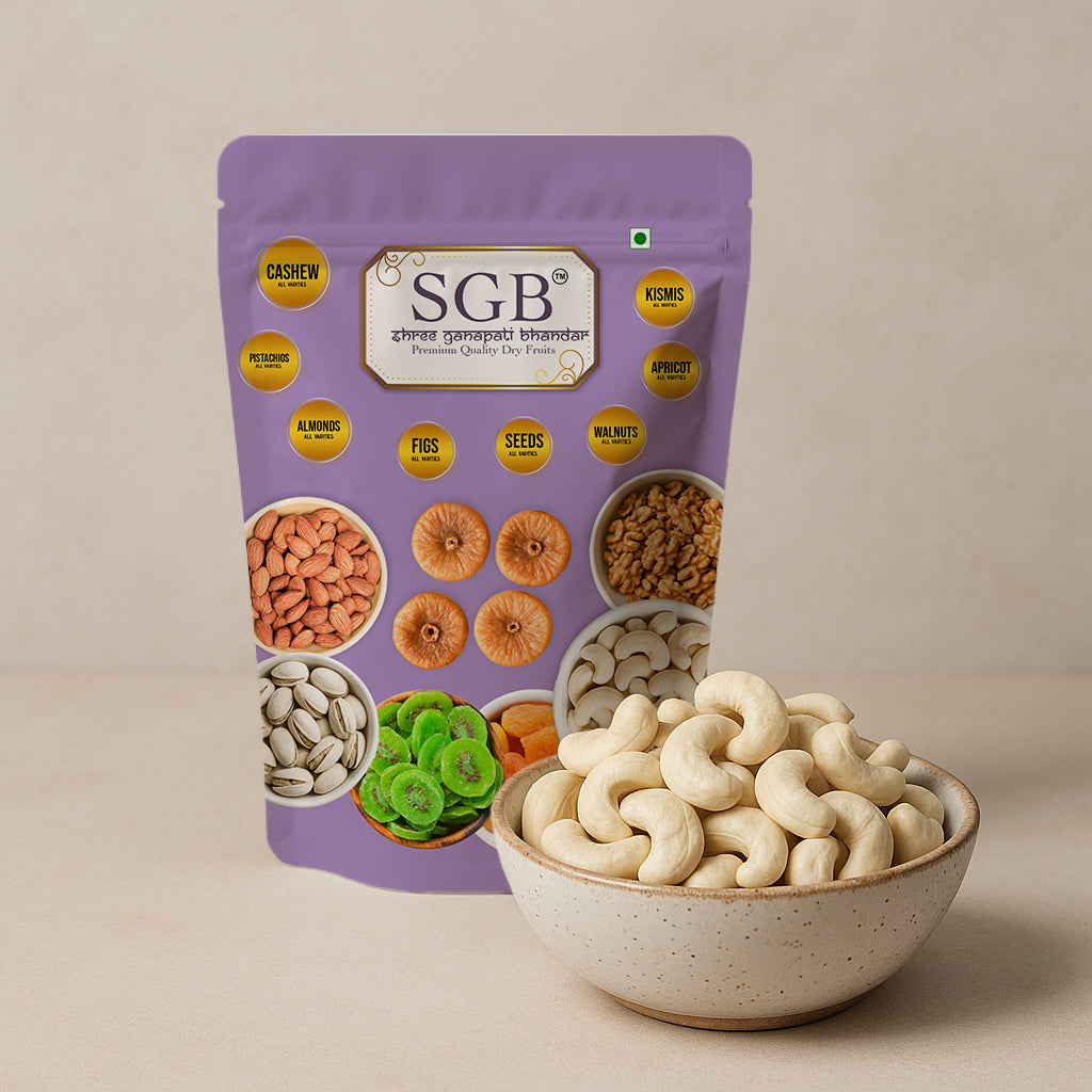At Shree Ganapati Bhandar, we handpick and pack each batch with precision to ensure you receive only whole, fresh, and flawless cashews that deliver both taste and nutrition.