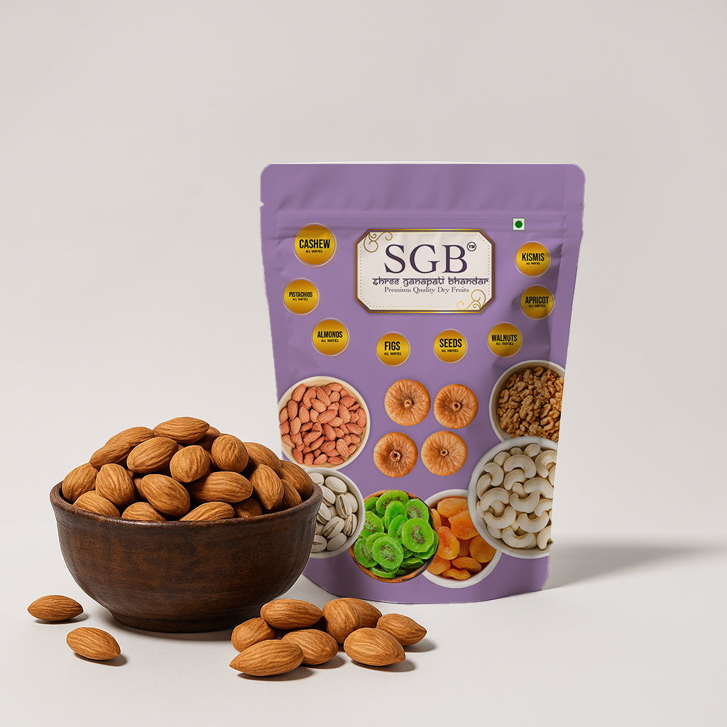 Indulge in the superior size and nutrition of our Mamra Big Almonds, known for their high oil content, intense flavor, and rich texture. Sourced from traditional orchards, these premium-quality almonds are unpolished, 100% natural, and packed with essential nutrients — making them ideal for daily health, Ayurvedic use, and premium gifting.